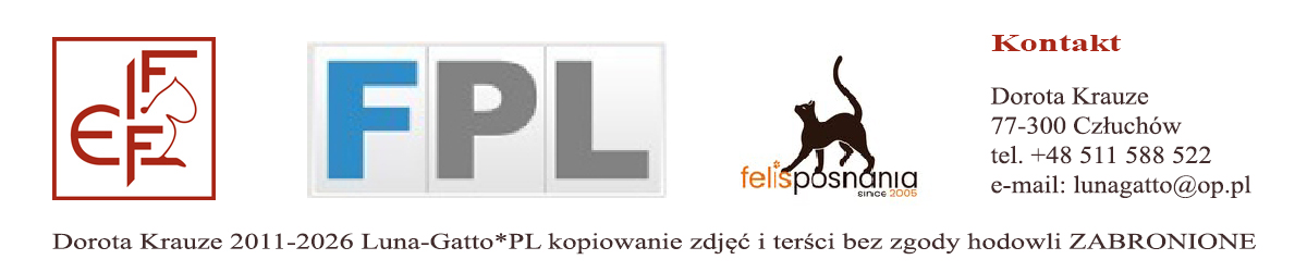 brytyjskich krótkowłosych. Hodowla Luna-Gatto*PL powstała w czerwcu 2011r, i jest zarejestrowana w Felis Posnania, będącym członkiem Federacji Felis Polonia, działającej pod patronatem FIFe.
